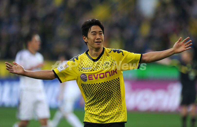 ゴールを決め歓喜するドルトムントの香川真司(Shinji Kagawa、2011年11月5日撮影)。(c)AFP/PATRIK STOLLARZ