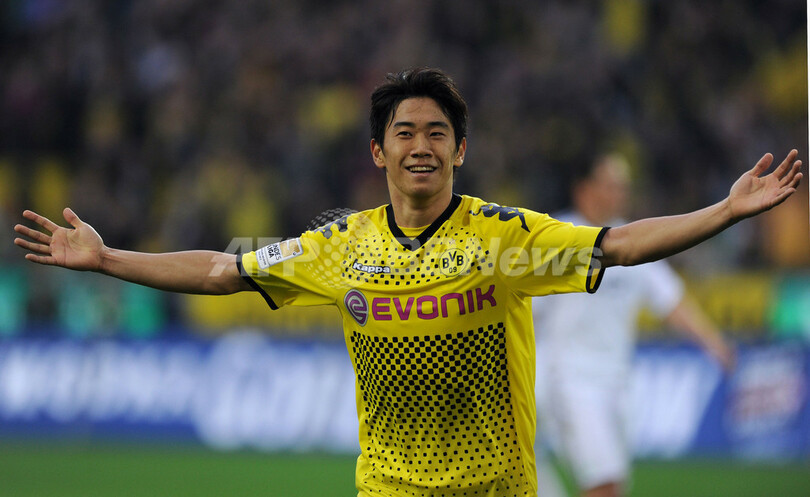 ゴールを決め歓喜するドルトムントの香川真司(Shinji Kagawa、2011年11月5日撮影)。(c)AFP/PATRIK STOLLARZ