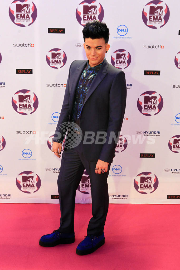 写真は、レッドカーペットに登場したアダム・ランバート(Adam Lambert、2011年11月6日撮影)。(c)AFP/PETER MUHLY