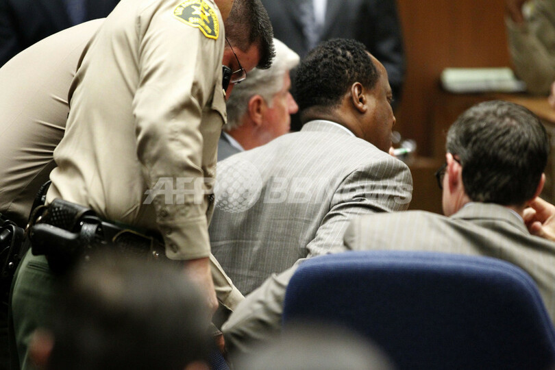 【11月8日 AFP】(一部更新、写真追加)2009年に死亡した米人気歌手マイケル・ジャクソン(Michael Jackson)さんの死をめぐり、過失致死罪に問われた元専属医コンラッド・マーレー(Conrad Murray)被告に対し、ロサンゼルス郡上級裁判所(Los Angeles Superior Court)の陪審は7日、有罪評決を下した。最高禁錮4年が言い渡される可能性がある。