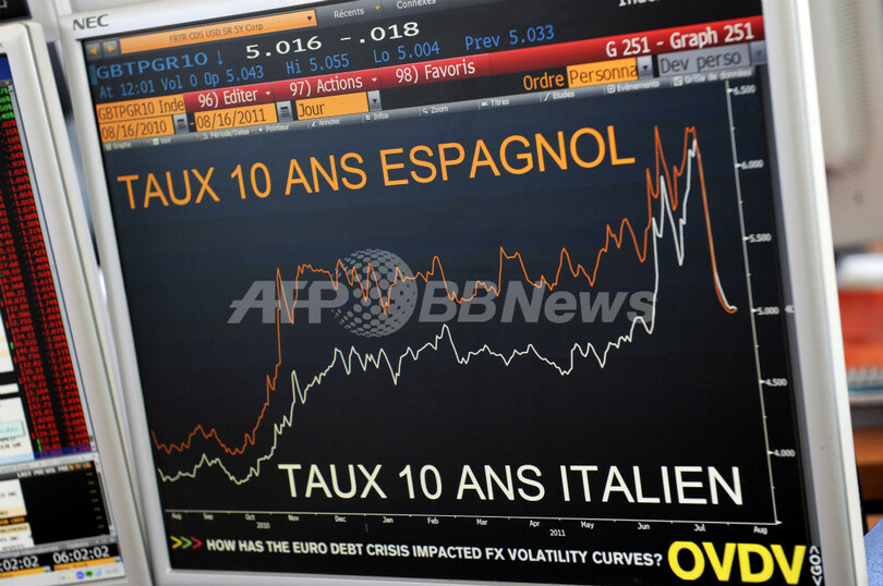 また、イタリア国債10年物の利回りが急上昇。午前中に7%を突破し、1997年6月以来の最高水準を更新した。1兆9000億ユーロ(約200兆円)という多額の公的債務を抱える同国にとって、市場から資金調達することが困難になるとみられる危険水準だ。市場は、首相が辞任の意向を示したものの、イタリアが財政危機に対処できるのかを不安視している。(c)AFP