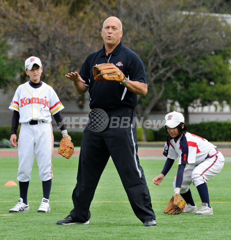 【11月10日 AFP】米大リーグ(MLB)のボルティモア・オリオールズ(Baltimore Orioles)で活躍したカル・リプケン・ジュニア(Cal Ripken Jr.)氏が9日、駒沢学園女子中・高等学校(Komazawa Gakuen Girls Junior and Senior High School)を訪問し、野球教室を開いた。(c)AFP