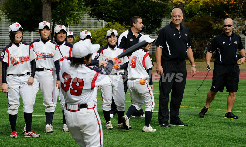 【11月10日 AFP】米大リーグ(MLB)のボルティモア・オリオールズ(Baltimore Orioles)で活躍したカル・リプケン・ジュニア(Cal Ripken Jr.)氏が9日、駒沢学園女子中・高等学校(Komazawa Gakuen Girls Junior and Senior High School)を訪問し、野球教室を開いた。(c)AFP