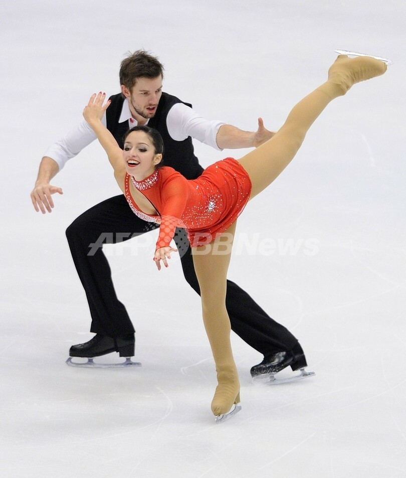 56.23点で3位につけたイタリアのステファニア・ベルトン(Stefania Berton)/オンドレイ・ホッタレク(Ondrej Hotarek)組(2011年11月11日撮影)。(c)AFP/Toru YAMANAKA