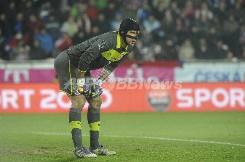 戦況を見守るチェコのGKペトル・チェフ(Petr Cech、2011年11月11日撮影)。(c)AFP/MICHAL CIZEK