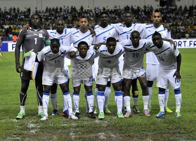 試合前の写真撮影に臨むガボンの選手(2011年11月10日撮影)。(c)AFP/ SIA KAMBOU