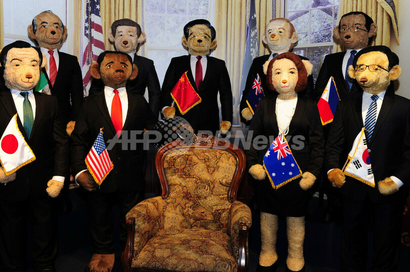 【11月12日 AFP】ハワイ・ホノルル(Honolulu)にある博物館「テディベアワールド(Teddy Bear World)」に9日、同地で間もなく開幕するアジア太平洋経済協力会議(APEC)首脳会議に出席する首脳らをかたどった等身大ベアがお目見えした。