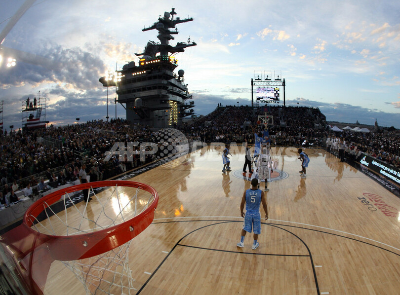 全米大学体育協会(NCAA)「キャリアクラシック(Carrier Classic)」の試合は、ミシガン(Michigan)州のステート・スパルタンズ(State Spartans)とノースカロライナ(North Carolina)州のタール・ヒールズ(Tar Heels)が対戦。コートは空母の飛行甲板に設営された。