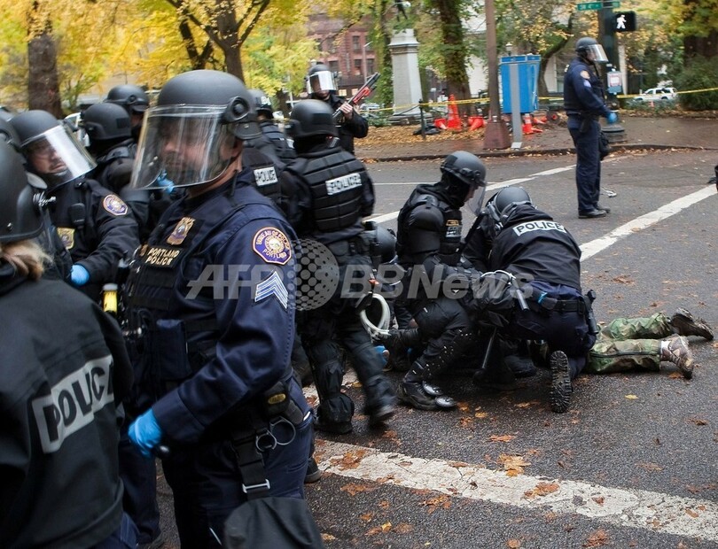 【11月14日 AFP】全米に拡大している抗議行動「オキュパイ・ウォールストリート(Occupy Wall Street、ウォール街を占拠せよ)」に共鳴してオレゴン(Oregon)州ポートランド(Portland)中心部の広場や公園を占拠していた「オキュパイ・ポートランド(Occupy Portland)」の参加者が13日、警察によって強制排除され、50人を超える逮捕者が出た。