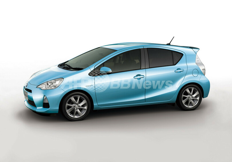 写真は、5人乗りコンパクトハイブリッドカー「Aqua」。1.5Lエンジンと高出力モーターを組み合わせ、燃費は35km/L程度(2011年11月15日提供)。(c)AFP/Toyota Motor