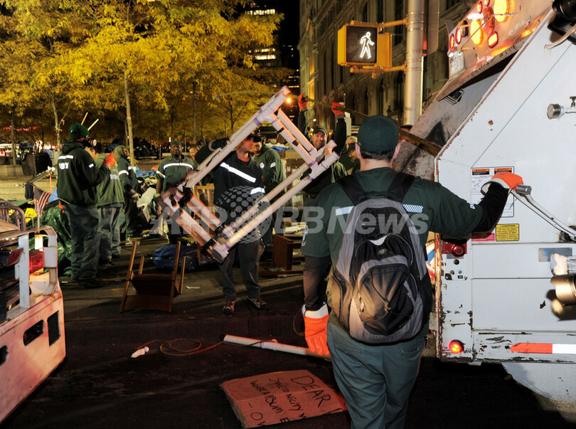 「反ウォール街デモ」発祥の地、警官隊がテント撤去 NY