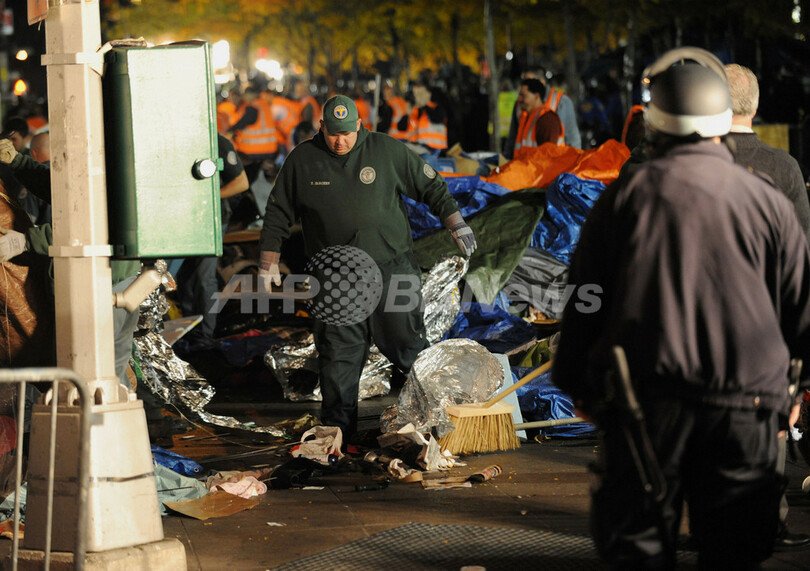 ニューヨークのマイケル・ブルームバーグ(Michael Bloomberg)市長の事務所はツイッター(Twitter)で、「ズコッティ公園の占拠をしている者は一時的に退去し、テントや防水シートを撤去しなさい。公園の清掃が終われば、デモ参加者たちはまた公園に戻ることができる」と呼びかけていた。
