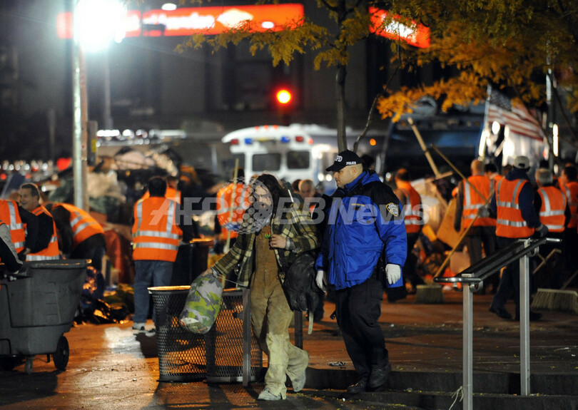 「反ウォール街デモ」発祥の地、警官隊がテント撤去 NY