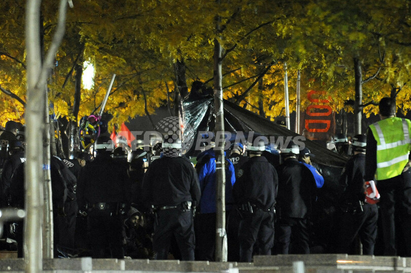 「反ウォール街デモ」発祥の地、警官隊がテント撤去 NY