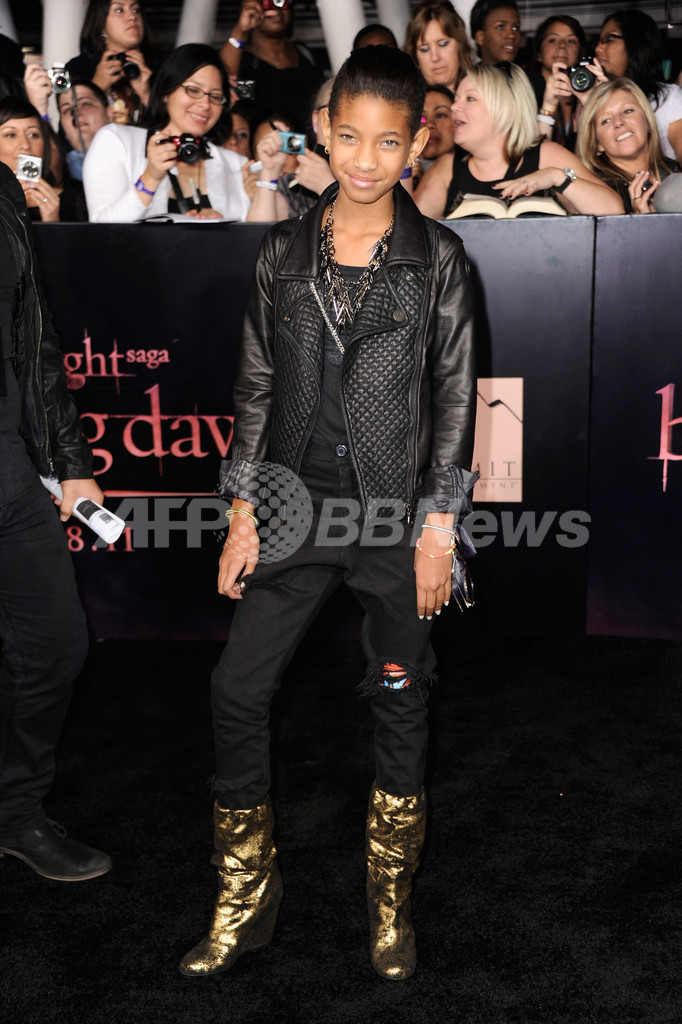 米国の大人気映画シリーズ「トワイライト(Twilight)」の最新作『トワイライト・サーガ/ブレイキング・ドーン Part 1(The Twilight Saga: Breaking Dawn - Part 1)』のプレミア上映会が14日、米ロサンゼルス(Los Angeles)で開催され、キャストらが登場した。本作の日本公開は、2012年2月25日。写真は、ゲストとして登場した俳優ウィル・スミス(Will Smith)の娘で歌手のウィロウ・スミス(Willow Smith、2011年11月14日撮影)。(c)AFP/Getty Images/Frazer Harrison