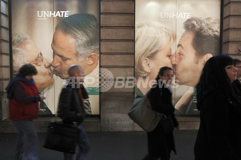 【11月17日 AFP】16日に新たなグローバルキャンペーン「UNHATE(反・憎悪)」の展開を始めた伊アパレルブランド「ベネトン(Benetton)」は同日、ローマ法王庁からの強い抗議を受け、ローマ法王ベネディクト16世(Pope Benedict XVI)とイスラム教の有力指導者とのキスシーンの合成写真を撤去した。