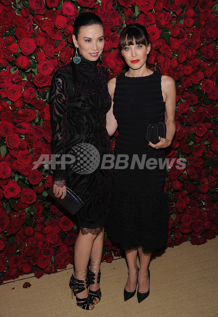 ガラパーティには、アルモドバル監督本人をはじめ、女優のブレイク・ライブリー(Blake Lively)やサラ・ジェシカ・パーカー(Sarah Jessica Parker)、ドリュー・バリモア(Drew Barrymore)、エマ・ストーン(Emma Stone)、モデルのミランダ・カー(Miranda Kerr)、ジョアン・スモールズ(Joan Smalls)ら豪華ゲストが出席。  米「ヴォーグ(VOGUE)」のアナ・ウィンター(Anna Wintour)編集長やデザイナーのカール・ラガーフェルド(Karl Lagerfeld)、「ジミー チュウ(Jimmy Choo)」創始者のタマラ・メロン(Tamara Mellon)、フォトグラファーのマリオ・テスティーノ(Mario Testino)など、ファッション界を代表する人物も祝福に駆けつけた。(c)AFP/Getty Images