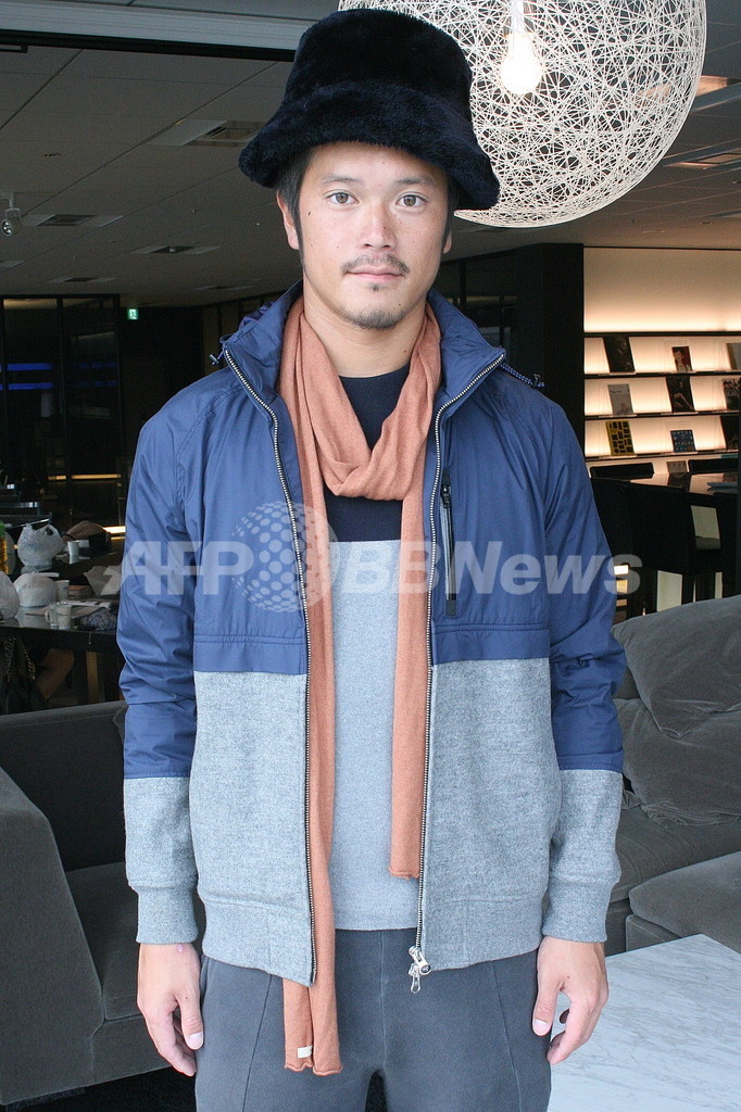 異素材の切り替えがユニークなブルゾンは「ヒュンメル エイチ」。モコモコ素材の帽子は、名古屋・大須の古着屋で購入しました。(c)MODE PRESS