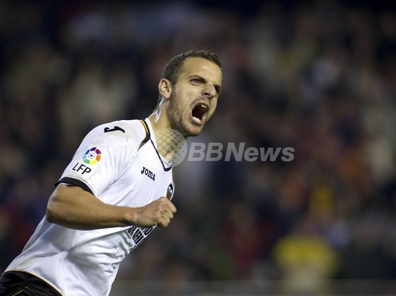 ゴールを決め歓喜するバレンシアのロベルト・ソルダド(Roberto Soldado、2011年11月19日撮影)。(c)AFP/JAIME REINA
