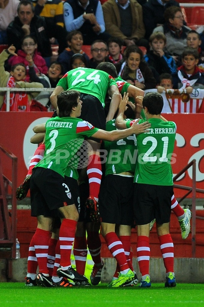 チームの得点に歓喜するアスレティック・ビルバオの選手(2011年11月20日撮影)。(c)AFP/JORGE GUERRERO