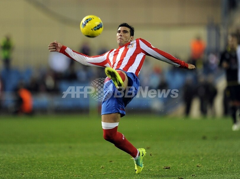ボールに足を伸ばすアトレティコ・マドリードのホセ・アントニオ・レイェス(Jose Antonio Reyes、2011年11月20日撮影)。(c)AFP/DANI POZO