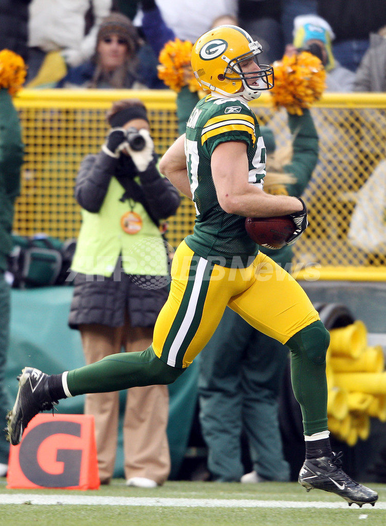 第4クォーターにタッチダウンを決めるパッカーズのジョーディ・ネルソン(Jordy Nelson、2011年11月20日撮影)。(c)AFP/Getty Images/Matthew Stockman