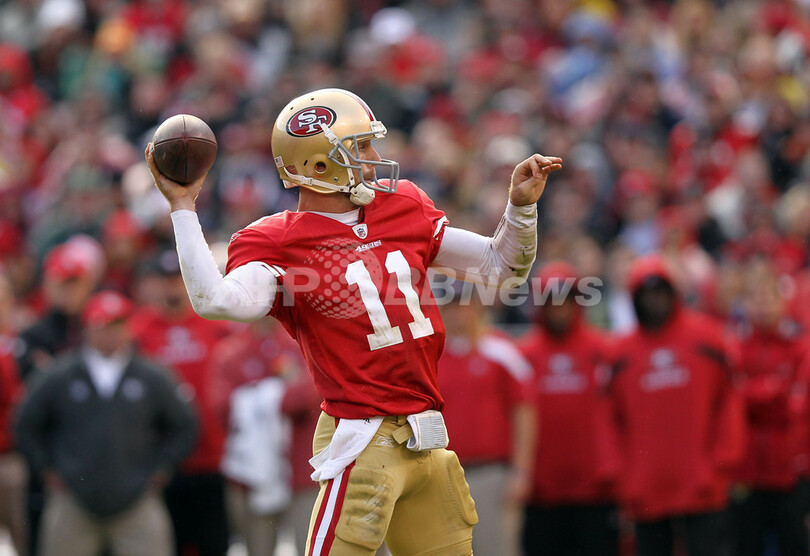 フォーティナイナーズはデイヴィッド・エイカーズ(David Akers)が前半だけで3本のフィールドゴールを決めると、QBのアレックス・スミス(Alex Smith)は2本のタッチダウンパスを成功させた。(c)AFP