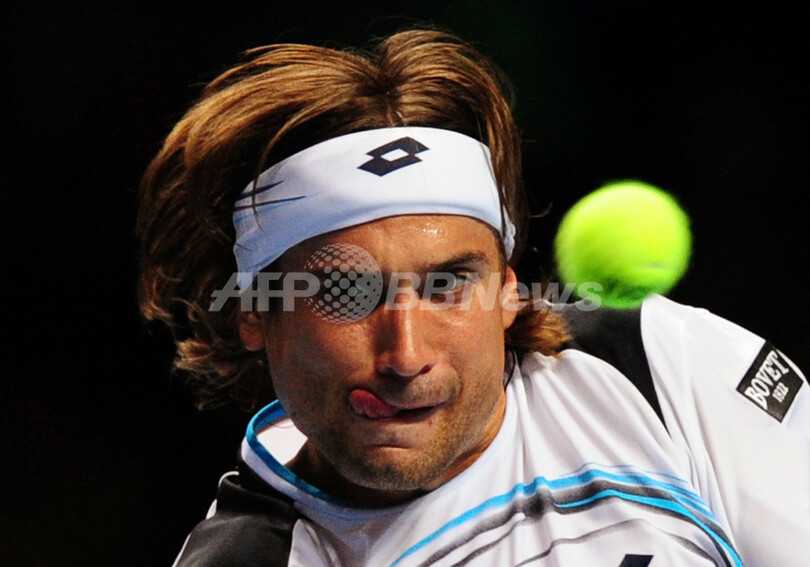 リターンを打つダビド・フェレール(2011年11月21日撮影)。(c)AFP/LEON NEAL
