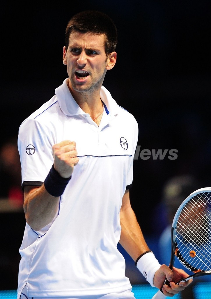 ポイントを奪い歓喜するノバク・ジョコビッチ(2011年11月21日撮影)。(c)AFP/LEON NEAL