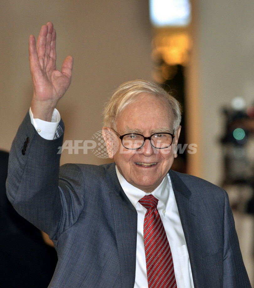 バフェット氏は先見性のある的確な株式投資によって、現在では米経済誌フォーブス(Forbes)の世界長者番付の第3位に名を連ねる。同誌によると、バフェット氏の保有資産は500億ドル(約3兆8500億円)。(c)AFP