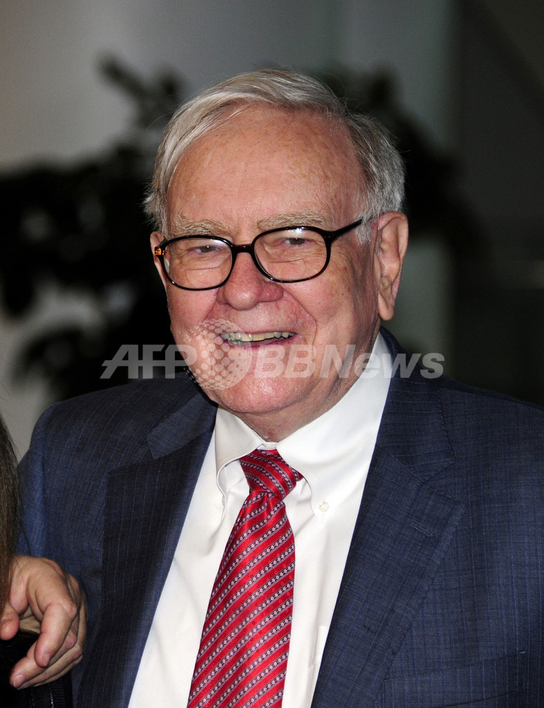 バフェット氏は先見性のある的確な株式投資によって、現在では米経済誌フォーブス(Forbes)の世界長者番付の第3位に名を連ねる。同誌によると、バフェット氏の保有資産は500億ドル(約3兆8500億円)。(c)AFP