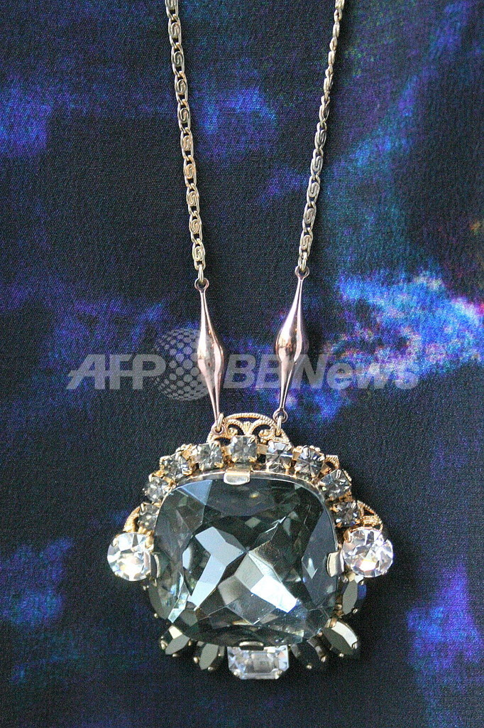 大きめのビジューが目を引く「アントン・ユニス」のピアスとネックレスを全体のアクセントにしました。(c)MODE PRESS