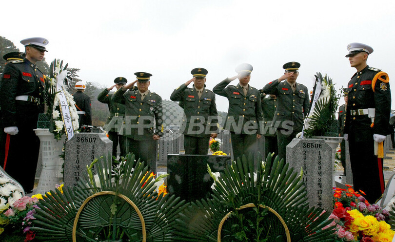 韓国中部・大田(Daejeon)市にある国立墓地では、亡くなった韓国海兵隊員2人の追悼式が行われ、数百人が出席した。延坪島に建てられた2人のレリーフ像の近くでも、式典が行われた。
