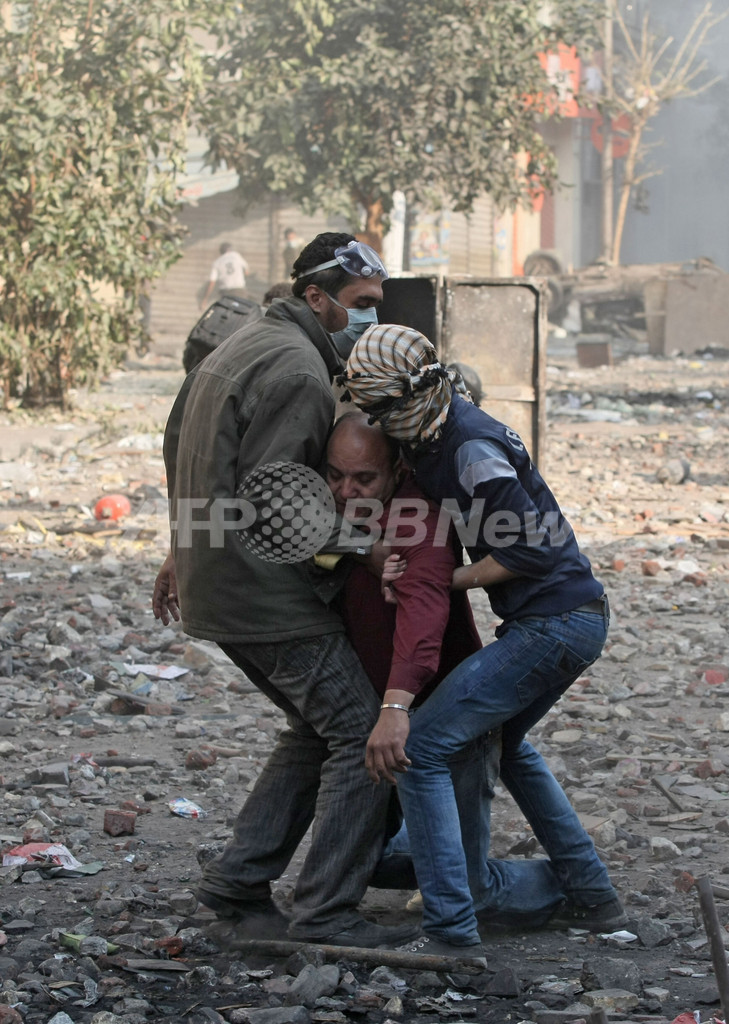 この日は、カイロ(Cairo)のタハリール広場(Tahrir Square)周辺のムハンマド・マフムード通りで衝突が発生。AFP記者によると、機動隊がこの通りにバリケードを築き、催涙ガスやバードショット(鳥用の散弾銃)を発射した。