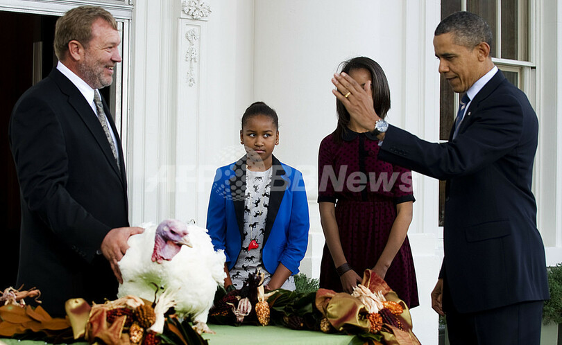 【11月24日 AFP】米国のバラク・オバマ(Barack Obama)大統領は23日、感謝祭を前に、ホワイトハウスで毎年恒例の七面鳥の恩赦式を行った。