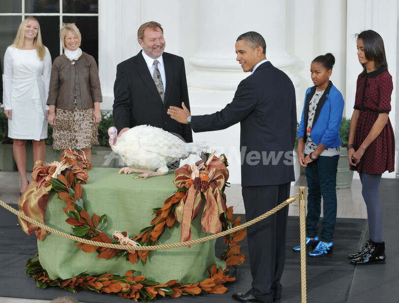 【11月24日 AFP】米国のバラク・オバマ(Barack Obama)大統領は23日、感謝祭を前に、ホワイトハウスで毎年恒例の七面鳥の恩赦式を行った。