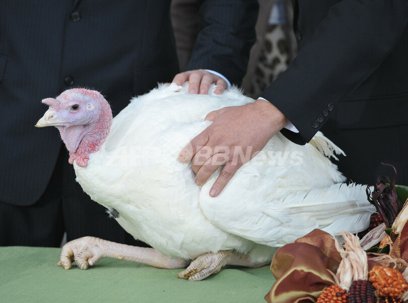 【11月24日 AFP】米国のバラク・オバマ(Barack Obama)大統領は23日、感謝祭を前に、ホワイトハウスで毎年恒例の七面鳥の恩赦式を行った。