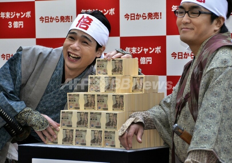 ニュース 政治・経済 夢は大きく、年末ジャンボ宝くじ発売 2011年11月24日 12:27 発信地:東京 [ アジア・オセアニア 東京 ] このニュースをシェア ‹ › ❮ 3/7 ❯ 1等と前後賞合わせて3億円が当たる年末ジャンボ宝くじが24日、全国で一斉に発売された。東京・銀座の売り場には、一獲千金を夢見る1000人以上が列をつくった。写真は、銀座の宝くじ売り場前で行われたイベントで、3億円の札束に抱きつくお笑いコンビの平成ノブシコブシ(2011年11月24日撮影)。(c)AFP/Yoshikazu TSUNO 画像作成中 ! 【11月24日 AFP】1等と前後賞合わせて3億円が当たる年末ジャンボ宝くじが24日、全国で一斉に発売された。東京・銀座の売り場には、一獲千金を夢見る1000人以上が列をつくった。(c)AFP 政治・経済 一覧へ> メディア・報道関係・法人の方向け 写真・動画 購入のお問合せ>