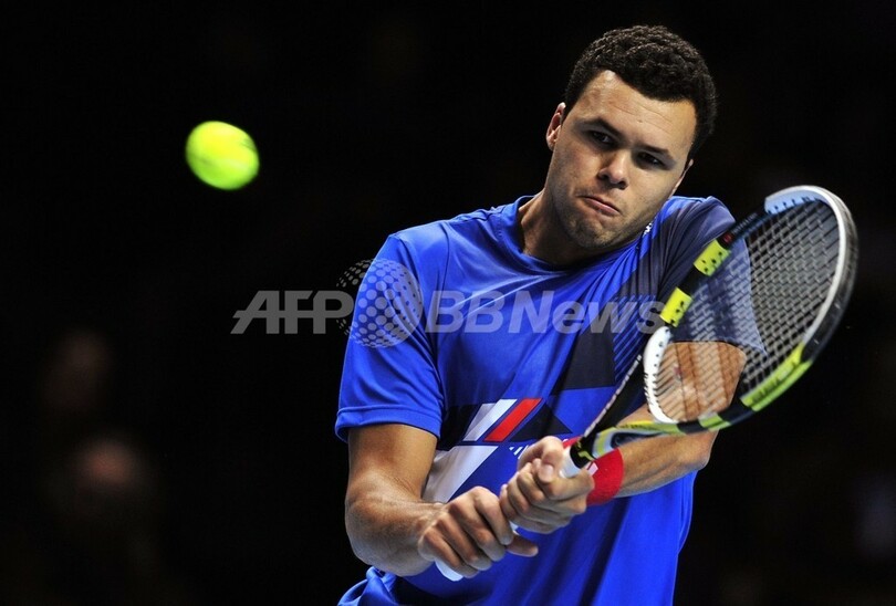 リターンを打つジョーウィルフリード・ツォンガ(2011年11月26日撮影)。(c)AFP/GLYN KIRK