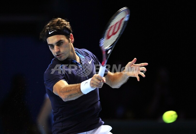 リターンを打つロジャー・フェデラー(2011年11月27日撮影)。(c)AFP/GLYN KIRK