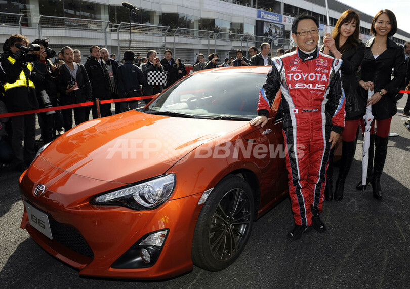 写真は「86」を披露するトヨタの豊田章男(Akio Toyoda)社長(右から3人目、2011年11月27日撮影)。(c)AFP/TOSHIFUMI KITAMURA