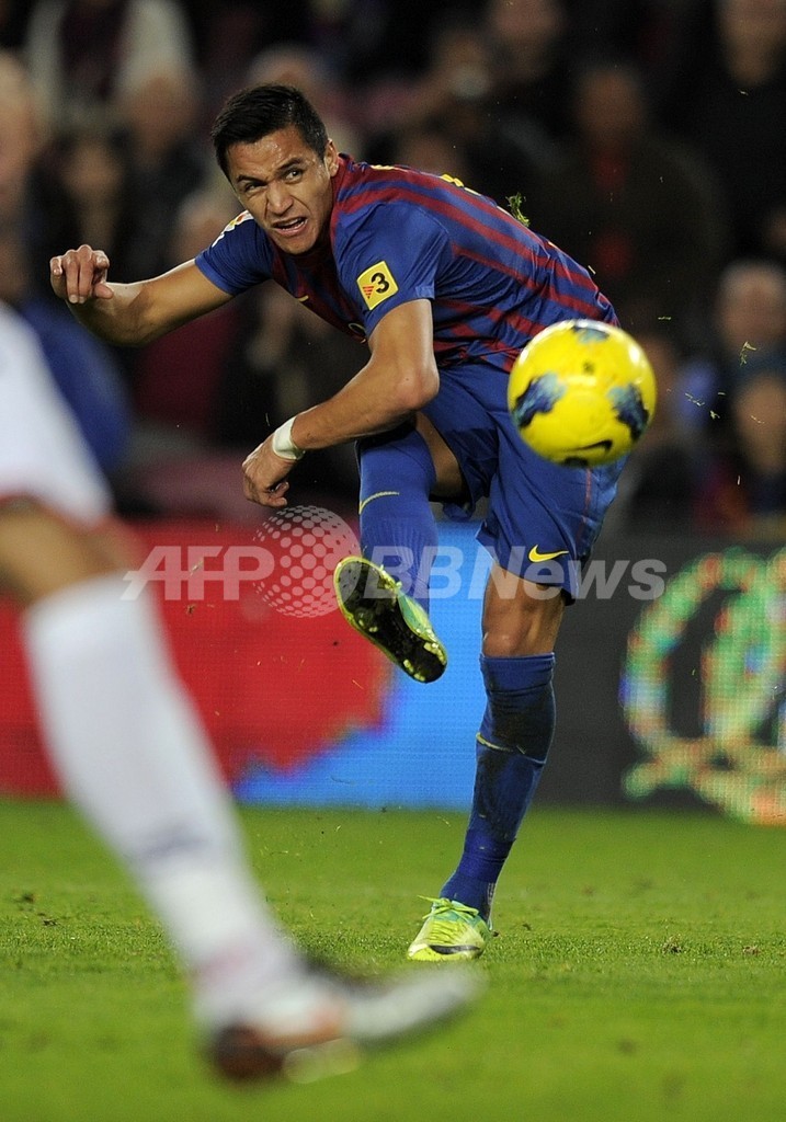 シュートを放つバルセロナのアレクシス・サンチェス(Alexis Sanchez、2011年11月29日撮影)。(c)AFP/LLUIS GENE