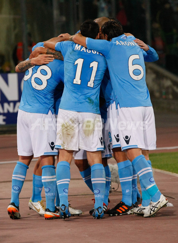 得点に歓喜するナポリの選手(2011年11月29日撮影)。(c)AFP/Carlo Hermann