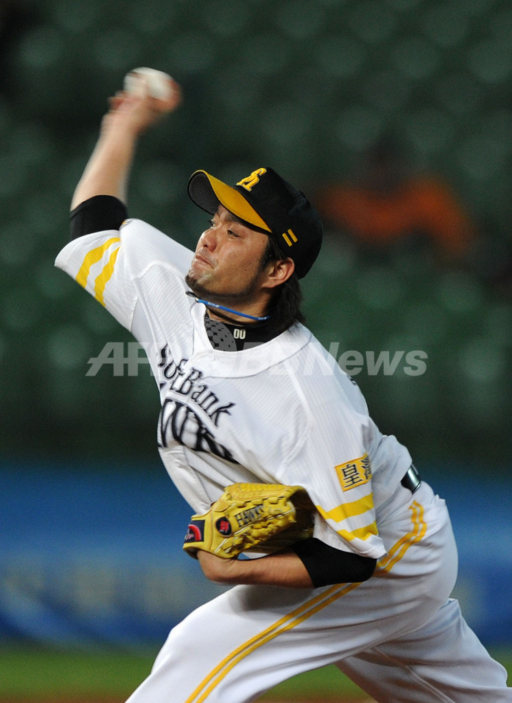 投球するソフトバンク・ホークスの吉川輝昭 (Teruaki Yoshikawa、2011年11月29日撮影)。(c)AFP/Sam YEH