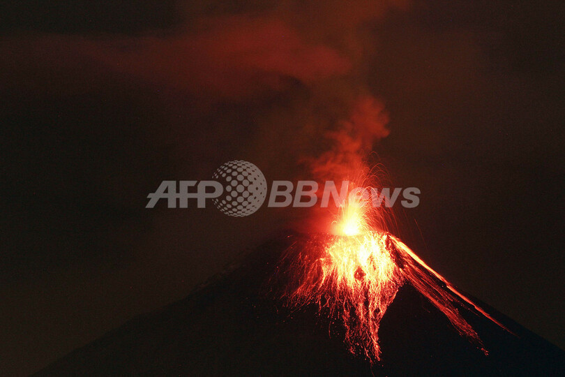 【11月30日 AFP】南米エクアドル・アンデス山脈のトゥングラウア火山(Tungurahua Volcano、標高5029メートル)が29日、噴火した。クレーターからは赤熱した巨大な岩塊が300メートル以上噴き上がり、斜面を転げ落ちた。一部の村では避難が始まった。