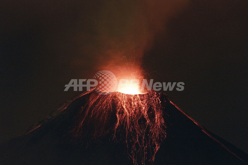 【11月30日 AFP】南米エクアドル・アンデス山脈のトゥングラウア火山(Tungurahua Volcano、標高5029メートル)が29日、噴火した。クレーターからは赤熱した巨大な岩塊が300メートル以上噴き上がり、斜面を転げ落ちた。一部の村では避難が始まった。