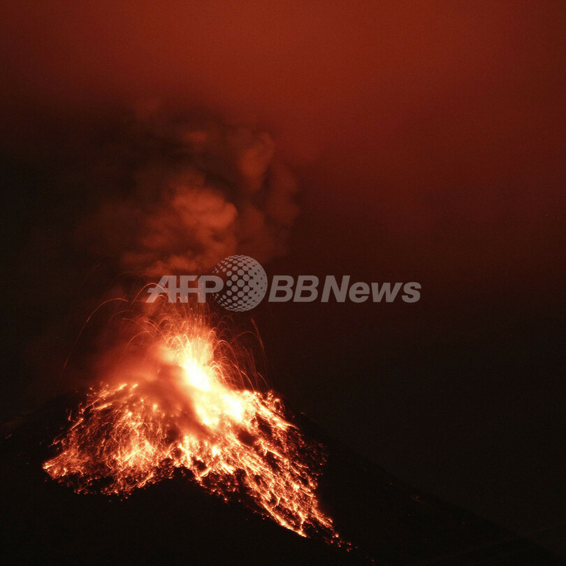 【11月30日 AFP】南米エクアドル・アンデス山脈のトゥングラウア火山(Tungurahua Volcano、標高5029メートル)が29日、噴火した。クレーターからは赤熱した巨大な岩塊が300メートル以上噴き上がり、斜面を転げ落ちた。一部の村では避難が始まった。
