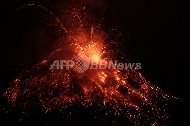 【11月30日 AFP】南米エクアドル・アンデス山脈のトゥングラウア火山(Tungurahua Volcano、標高5029メートル)が29日、噴火した。クレーターからは赤熱した巨大な岩塊が300メートル以上噴き上がり、斜面を転げ落ちた。一部の村では避難が始まった。