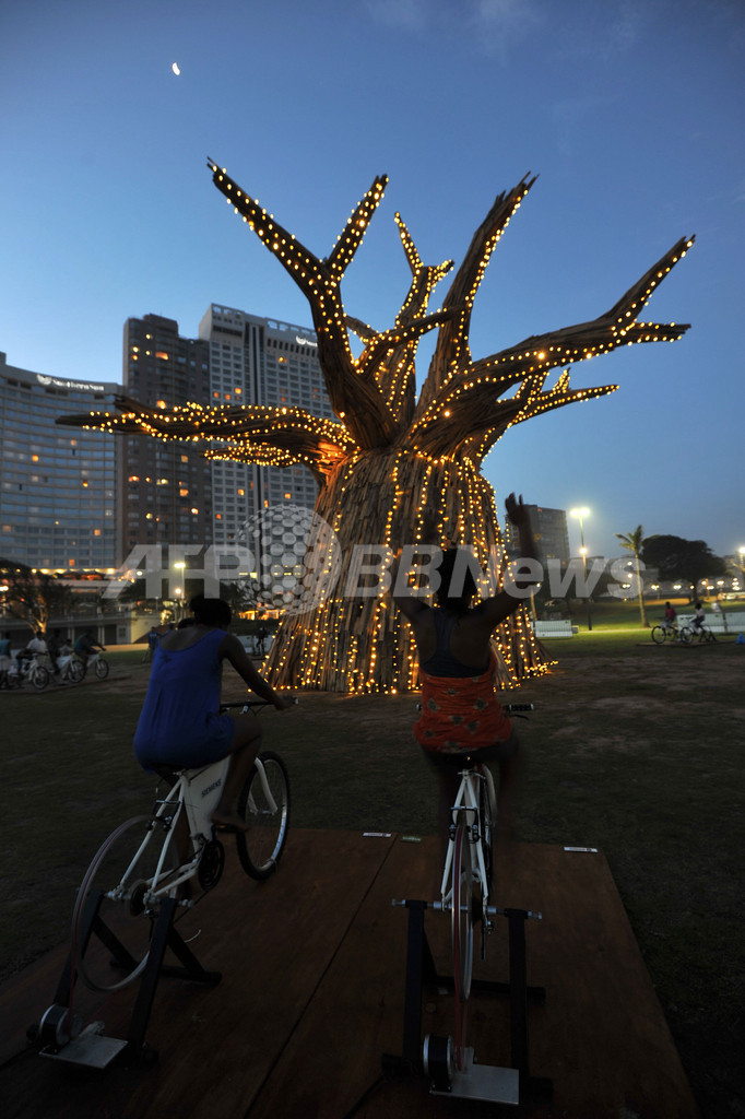 ニュース 環境・科学 自転車発電でバオバブの木をライトアップ、南アフリカ 2011年12月1日 16:30 発信地:ダーバン/南アフリカ [ アフリカ 南アフリカ ] このニュースをシェア ‹ › ❮ 4/7 ❯ 南アフリカ・ダーバン(Durban)の浜辺で11月30日、バオバブの木に取り付けられた電飾を自転車をこいでライトアップさせる自転車発電の試みが行われた。同地で28日から開かれている国連気候変動枠組み条約(UNFCCC)第17回締約国会議(COP17)にあわせた再生可能エネルギーに関する展示の一環。COP17の開催期間は9日まで(2011年11月30日撮影)。(c)AFP/ ALEXANDER JOE 画像作成中 ! 【12月1日 AFP】南アフリカ・ダーバン(Durban)の浜辺で11月30日、バオバブの木に取り付けられた電飾を自転車をこいでライトアップさせる自転車発電の試みが行われた。同地で28日から開かれている国連気候変動枠組み条約(UNFCCC)第17回締約国会議(COP17)にあわせた再生可能エネルギーに関する展示の一環。COP17の開催期間は9日まで。(c)AFP 環境・科学 一覧へ> メディア・報道関係・法人の方向け 写真・動画 購入のお問合せ>