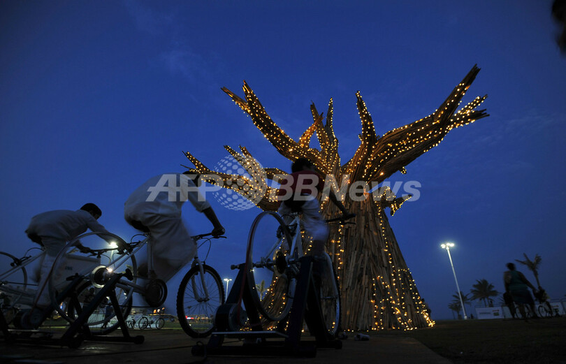 ニュース 環境・科学 自転車発電でバオバブの木をライトアップ、南アフリカ 2011年12月1日 16:30 発信地:ダーバン/南アフリカ [ アフリカ 南アフリカ ] このニュースをシェア ‹ › ❮ 2/7 ❯ 南アフリカ・ダーバン(Durban)の浜辺で11月30日、バオバブの木に取り付けられた電飾を自転車をこいでライトアップさせる自転車発電の試みが行われた。同地で28日から開かれている国連気候変動枠組み条約(UNFCCC)第17回締約国会議(COP17)にあわせた再生可能エネルギーに関する展示の一環。COP17の開催期間は9日まで(2011年11月30日撮影)。(c)AFP/ ALEXANDER JOE 画像作成中 ! 【12月1日 AFP】南アフリカ・ダーバン(Durban)の浜辺で11月30日、バオバブの木に取り付けられた電飾を自転車をこいでライトアップさせる自転車発電の試みが行われた。同地で28日から開かれている国連気候変動枠組み条約(UNFCCC)第17回締約国会議(COP17)にあわせた再生可能エネルギーに関する展示の一環。COP17の開催期間は9日まで。(c)AFP 環境・科学 一覧へ> メディア・報道関係・法人の方向け 写真・動画 購入のお問合せ>